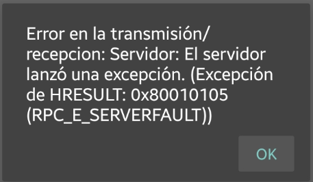 2. Error en la transmision/recepcion: Servidor: El Serevidor lanzo una excepción. (Excepcion de HRESULT: 0x80010105 (RPC_E_SERVERFAULT))